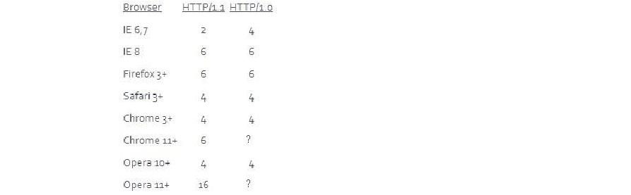 1、同一域名下瀏覽器的并發(fā)連接數(shù)有限制,一般在2 - 6之間,下圖列舉了各個瀏覽器的并發(fā)連接數(shù)(下圖供參考)