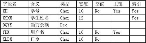 數(shù)據(jù)結(jié)構(gòu)組成:學(xué)號+學(xué)生姓名+用戶名+密碼+當前余額