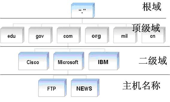 在Internet 中使用IP 地址來確定計算機(jī)的唯一地址,這種以數(shù)字表示的IP 地址不容易記憶。為了便于網(wǎng)絡(luò)地址的管理,人們采用了域名系統(tǒng),引入域名的概念。通過為每臺主機(jī)建立IP 地址與域名之間的映射關(guān)系,用戶在網(wǎng)上可以難記的IP 地址,而使用域名來唯一標(biāo)識網(wǎng)絡(luò)中的計算機(jī)。域名和IP 地址之間的關(guān)系,就像是某人的姓名和其身份證號碼之間的關(guān)系,顯然,記憶姓名要比記身份證號碼容易得多。