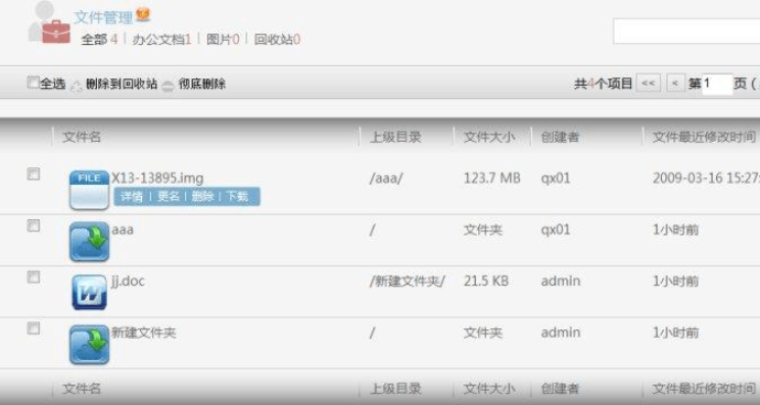 可以查看所有用戶上專的文件。把鼠標(biāo)移到文件名上會出現(xiàn)一些信息,比如詳情、更名、刪除、下載。