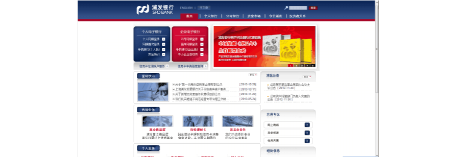,浦發(fā)銀行的網(wǎng)站首頁代表性高,在網(wǎng)站美學(xué)設(shè)計(jì)中算是較為成功一例。