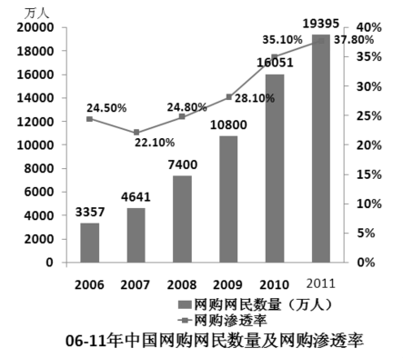 圖22006-2011年中國網(wǎng)購網(wǎng)民數(shù)量及網(wǎng)購滲透率