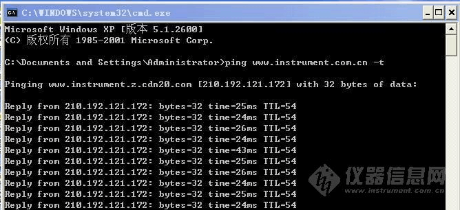 3、輸入cmd 后點(diǎn)[確定],然后輸入ping www.instrument.com.cn -t如圖2-1[/B]