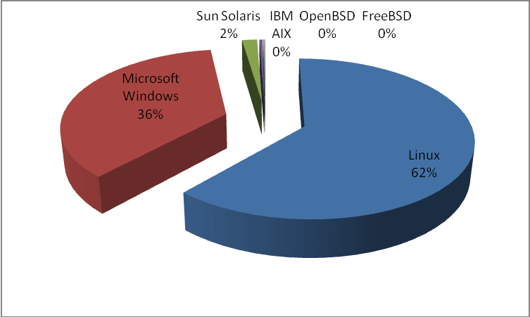 ? 對國內(nèi)的所有權(quán)威服務(wù)器進(jìn)行掃描,統(tǒng)計(jì)發(fā)現(xiàn),62以上使用Unix/Linux系統(tǒng),95以