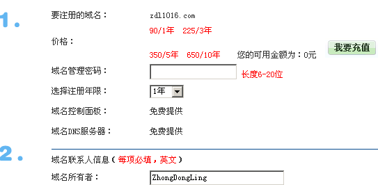 (2) 單擊域名注冊(cè),進(jìn)入申請(qǐng)界面,注冊(cè)之前檢查一下自己的域名是否被別人已經(jīng)注冊(cè)