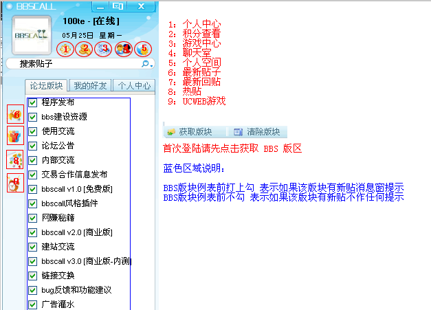 3 軟件主介面功能簡介(注意:第一次使用時要先點(diǎn)擊獲取版塊 (首次運(yùn)行如果BBS 分區(qū)比效多需要等待1-2分鐘自動獲取時間) )