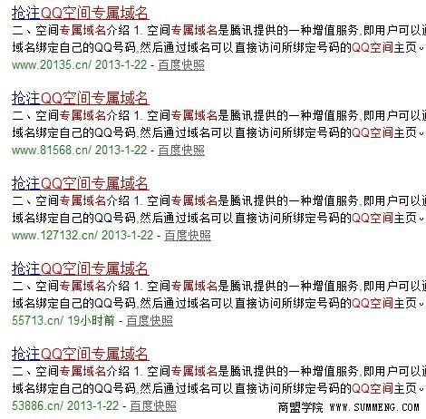 記者查詢也發(fā)現(xiàn),部分QQ 空間專屬域名已經(jīng)被百度收錄,不過這些域名還并沒有綁定的對應(yīng)的QQ 空間上,而是指向了騰訊該活動的宣傳頁面。