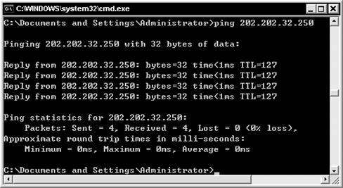 202.202.26.202命令查看本機(jī)是否和代理服務(wù)器連通。又如,測試本機(jī)的網(wǎng)卡是否正確安裝的常用命令是ping 127.0.0.1。