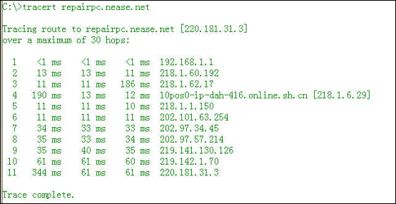 例子 2 :查看到 http://repairpc.nease.net 的路由