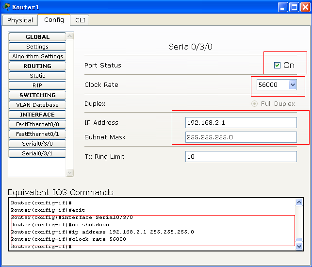 ip address 192.168.2.1 255.255.255.0 clock rate 56000