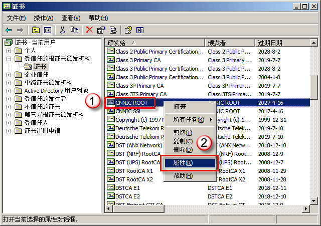 1、 導(dǎo)入CNNIC 證書到證書管理器中的信任區(qū)域