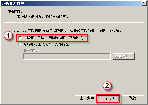 雙擊以上各文件→安裝證書→下一步→選擇“根據(jù)證書類型,自動(dòng)選擇證書存儲(chǔ)區(qū)” →下一步→完成→確定→確定。