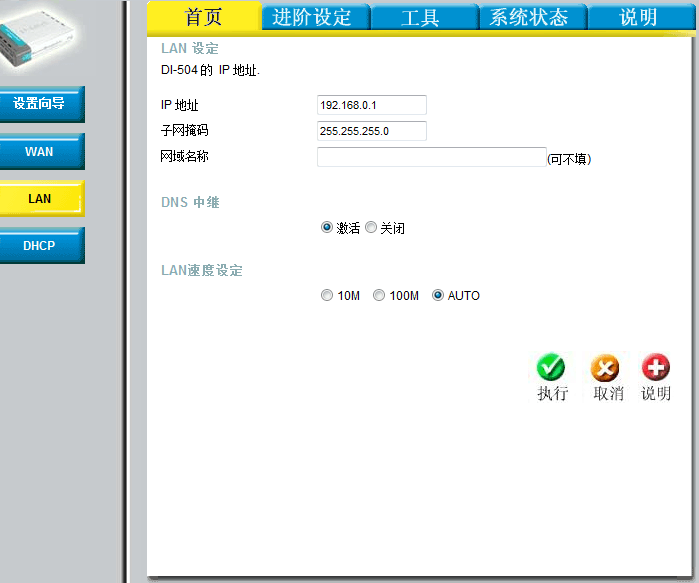子網(wǎng)掩碼 : DI-504 的子網(wǎng)掩碼,預設為 255.255.255.0。