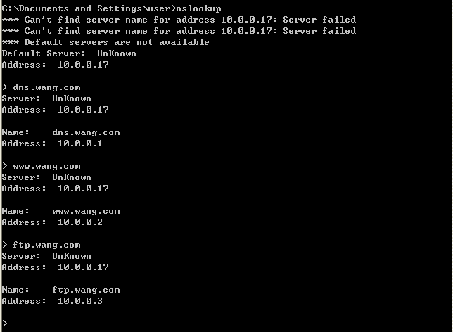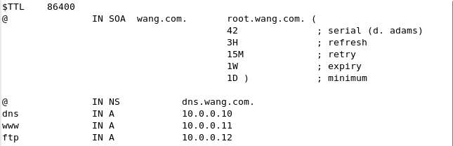 為wang.com 域創(chuàng)建一臺主域名服務器,并在區(qū)域文件中添加NS 、A 、CNAME 等記錄