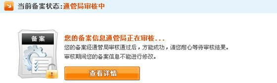 備案信息審核需要30個工作日左右。審核通過后您可以在您注冊時(shí)間填寫的郵箱中獲取備案號。然后通過“我的阿里—旺鋪—頂級域名”頁面填寫并提交備案號。阿里巴巴會將您的備案號提交給中國互聯(lián)網(wǎng)絡(luò)信息中心進(jìn)行審核,審核時(shí)間為3-4個工作日,審核通過,您就可以通過頂級域名訪問旺鋪了。
