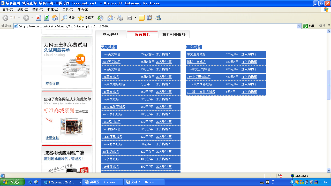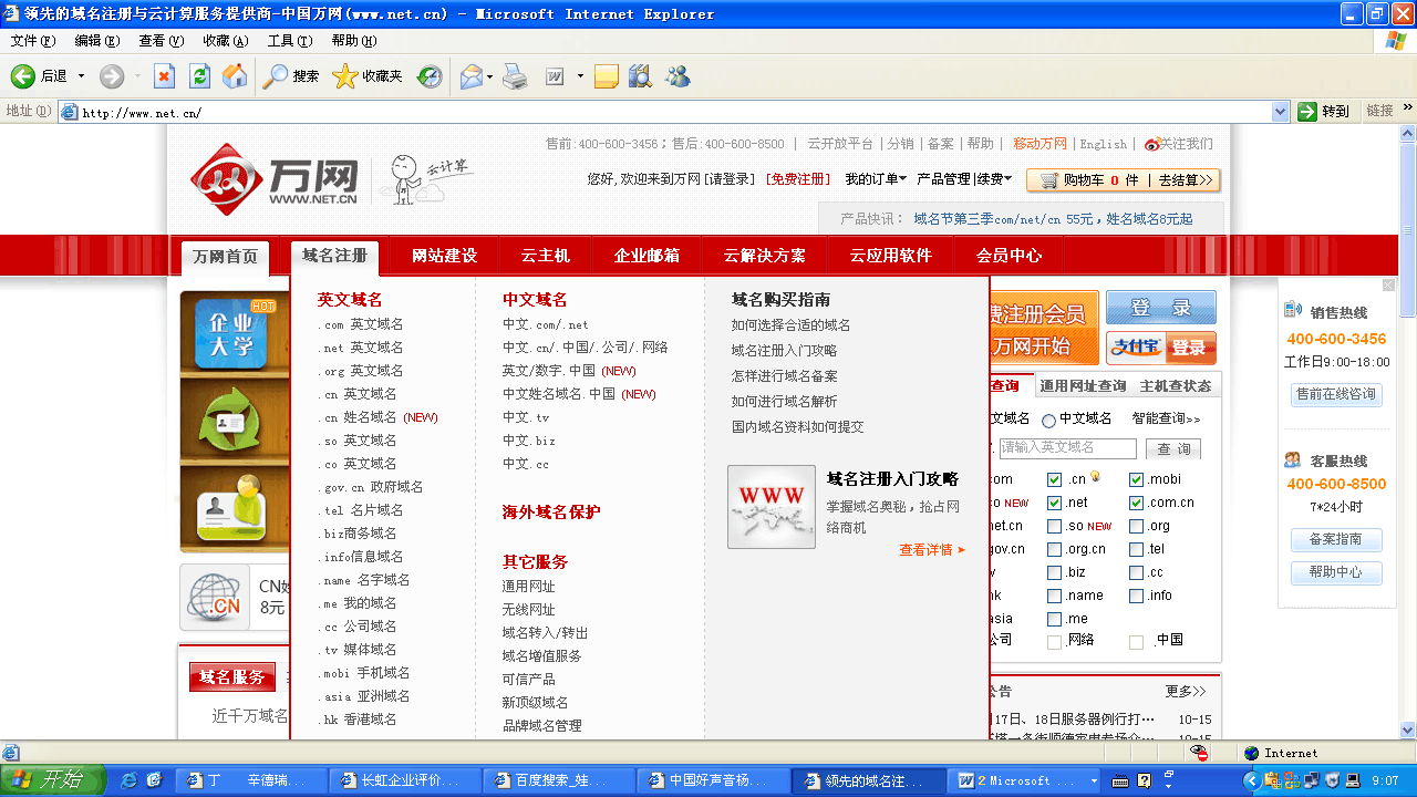 3、進(jìn)入中國(guó)萬(wàn)網(wǎng)(http://www.net.cn/),熟悉域名申請(qǐng)過(guò)程和繳費(fèi)情況。