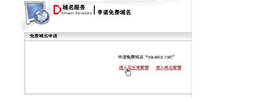 3 .提示注冊申請成功,現(xiàn)在點(diǎn)擊“進(jìn)入花生殼管理”: