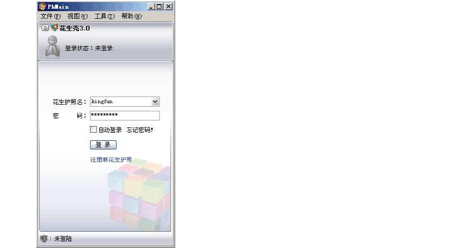 1 、登陸花生殼 3.0 客戶端,填寫申請得到的花生護(hù)照和密碼,點(diǎn)登陸: