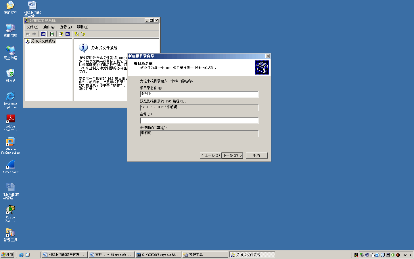 創(chuàng)建完成后,可以在“分布式文件系統(tǒng)”的窗口中看到DFS 根目錄。
