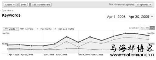 流量是SEO 的直接目的,如果網(wǎng)站的Keyword 排在第一位,但沒(méi)有訪問(wèn)者點(diǎn)擊它進(jìn)入網(wǎng)站進(jìn)行訪問(wèn),那仍然是“杯具”(當(dāng)然,這種情況不經(jīng)常發(fā)生),所以查看SEO 流量是每個(gè)SEOer 都會(huì)做的,也是每個(gè)站長(zhǎng)所追求的(具體可查看馬海祥博客《如何利用SEO 思維為網(wǎng)站獲取網(wǎng)絡(luò)流量》的相關(guān)介紹)。