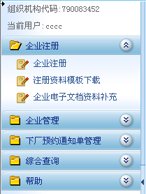 四、未注冊企業(yè)登錄系統(tǒng)后點(diǎn)擊菜單中的[企業(yè)注冊]->[企業(yè)注冊] (圖二)