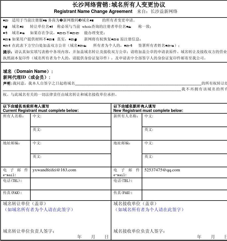 長沙網(wǎng)絡(luò)營銷域名所有人變更協(xié)議