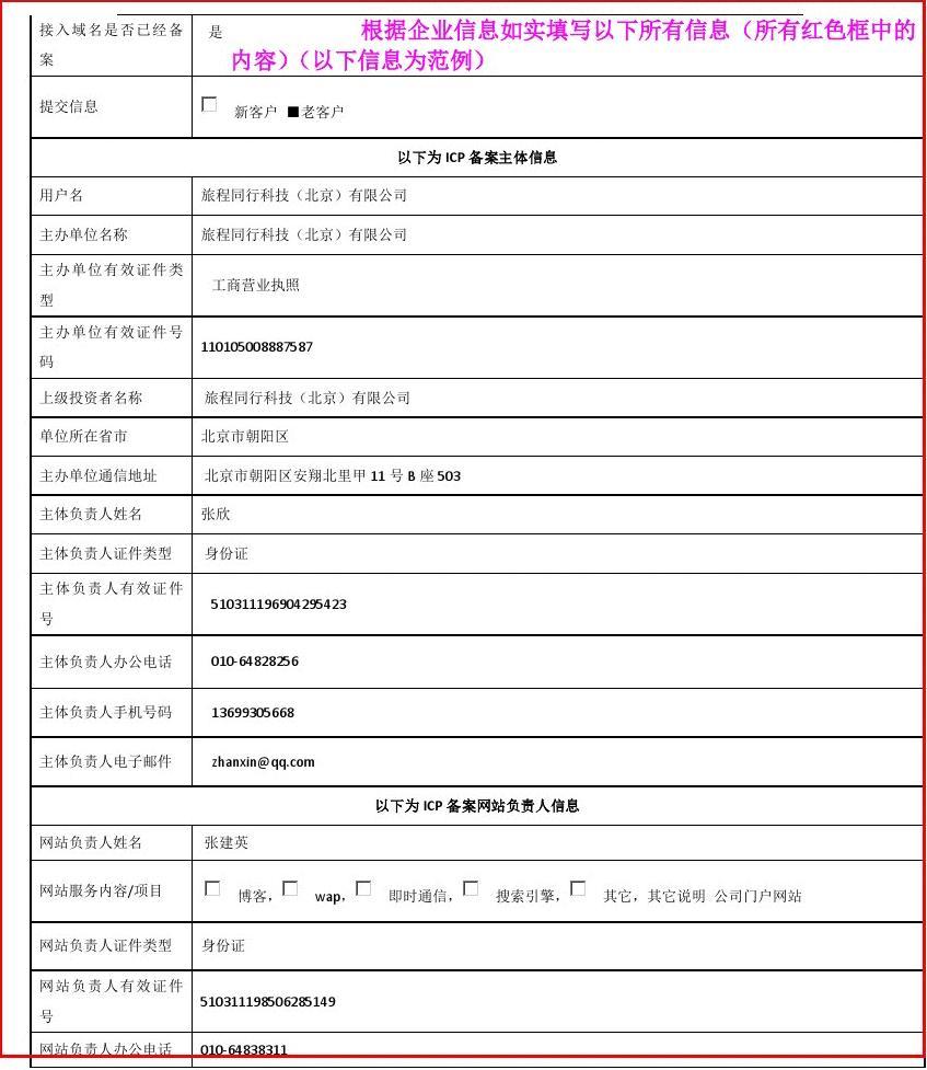 3、信息采集表(先提交一份電子版的過來我方審核、審核無誤后回傳一份給您并由您打印一份出來后在網(wǎng)站負責人處由網(wǎng)站負責人親筆簽字 一份 ) 如圖所示: