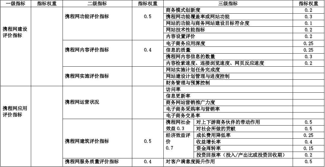(一) 攜程網(wǎng)網(wǎng)站功能評價指標(biāo)