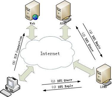 如圖所示,客戶端(Client )在瀏覽器地址欄中輸入www.hello.com ,發(fā)起對該網(wǎng)站的訪問請求,客戶端首先向LDNS (Local DNS)發(fā)出域名解析請求,要求LDNS 提供www.hello.com 所對應(yīng)的IP 地址。