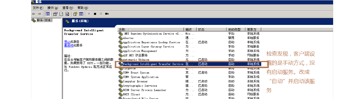 3、Background Intelligent Transfer Service服務(wù)是否已經(jīng)啟動