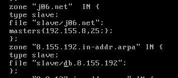 var/named/chroot/var/named/j06.net,加入輔助DNS 服務(wù)器的NS 和A 記錄,輔助DNS 的IP 192.155.8.35,容如圖2-2所示: