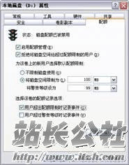 拒絕將磁盤空間給超過配額限制的用戶:選擇這個復選框,當用戶超過了分配的磁盤空間時,他們就會收到一個空間已用完的消息,而且不能在往空間里面寫任何東西