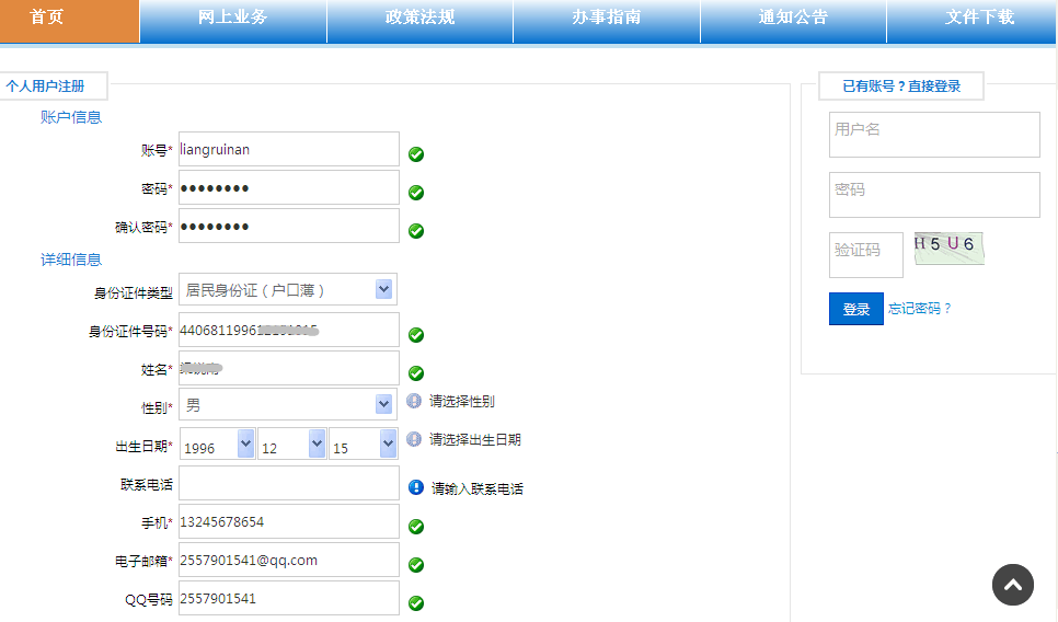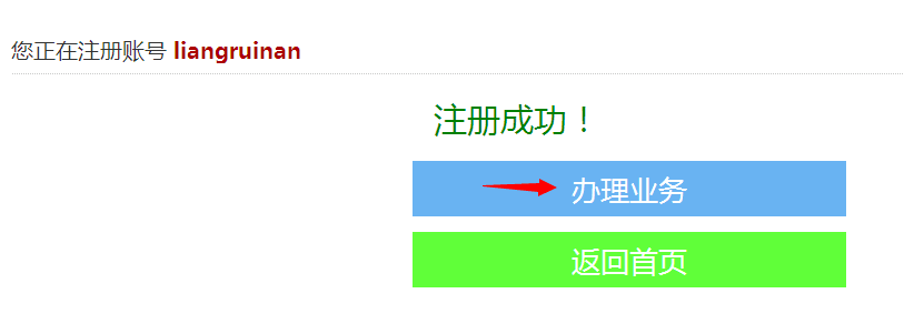 注冊成功后,點擊“辦理業(yè)務(wù)”進入網(wǎng)上業(yè)務(wù)。