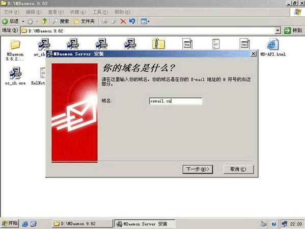 安裝完成就進(jìn)入了配置,輸入域名,下一步,輸入第一個(gè)賬號(hào),按默認(rèn)的選擇這個(gè)帳號(hào)就將是你的電子郵局管理員帳號(hào)。
