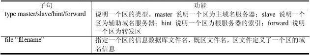 named.conf 文件中最重要的部分是區(qū)聲明,zone 語句的語法為: