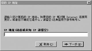 一路單擊“下一步”跳過(guò)系統(tǒng)提示信息,來(lái)到“您的IP 地址”窗口(如圖1),這里要求輸入本機(jī)的IP 地址。