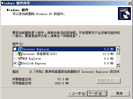 在本文中是為了實(shí)現(xiàn)簡(jiǎn)單的WEB 服務(wù),所以選擇了后,去點(diǎn),去里面去掉不需要的服務(wù),在提示的窗口中,我們只選擇圖中打勾的,是必須的,其它把勾都去了,結(jié)果如圖。