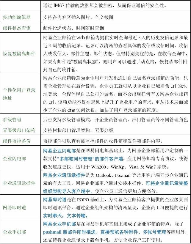 1. 網易企業(yè)郵箱功能1.1功能概要以技術創(chuàng)新來不斷滿足企業(yè)用戶產品需求,是網易企業(yè)郵箱運營團隊的一貫宗旨。在不斷的升級優(yōu)化過程中,網易企業(yè)郵箱推出了一系列貼近用戶的產品功能:網易企業(yè)郵箱 Mobi
