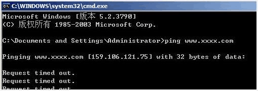 上圖中的“159.106.121.75”就是www.xxxx.com 域名指向的空間ip 地址?!癛equest timed out?!闭f明這個空間的ip 地址無法訪問,說明這個空間有了問題。