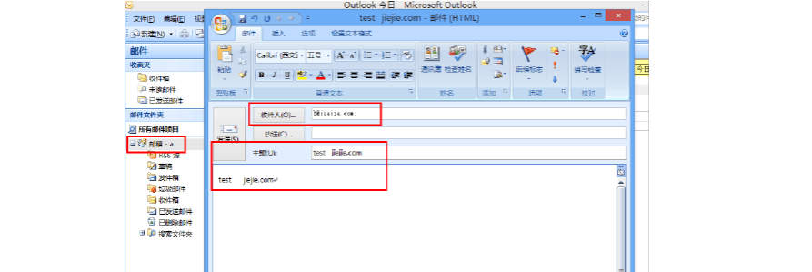 接下來我們要用OWA 測(cè)試一下這個(gè)新地址是否能夠正常工作。我們使用系統(tǒng)中的a 這個(gè)用戶登錄,給b@jiejie.com發(fā)送一封測(cè)試郵件,然后再用b 登錄驗(yàn)證。