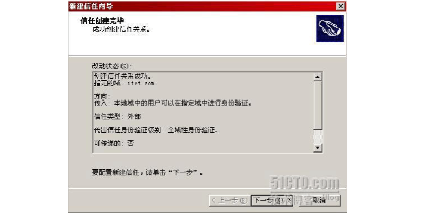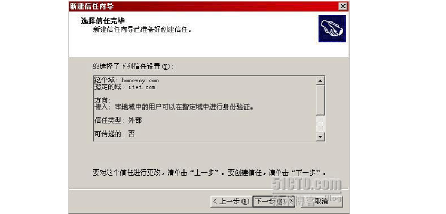 如下圖所示,信任關系創(chuàng)建成功,點擊完成結束HOMEWAY.COM 域的設置工作。