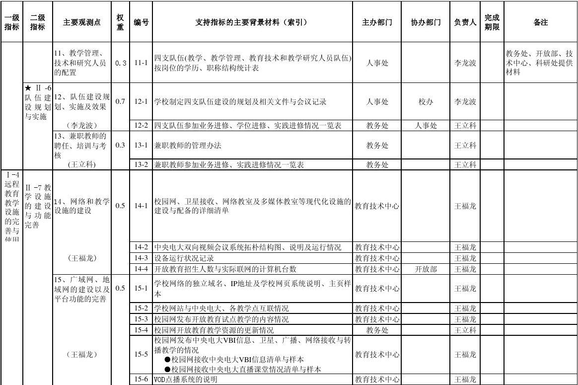 廈門市廣播電視大學"中央廣播電視大學人才培養(yǎng)模式改革和開放教育試點"項目總結(jié)性評估指標分解任務清單