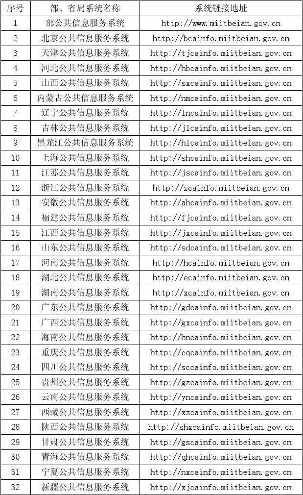 具體過程如下:在IE 瀏覽器中輸入url 地址(部、省公共信息服務(wù)系統(tǒng)鏈接地址詳見下表1)進(jìn)入部、省備案系統(tǒng)主頁面。