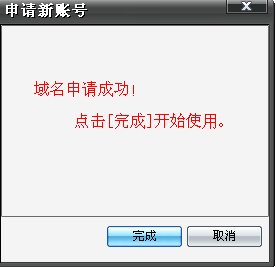,成功注冊域名后,出現(xiàn)成功提示信息,如下圖所示: