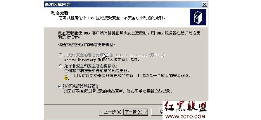 8 在彈出的窗口中可以選擇是否接受動(dòng)態(tài)更新,如果對(duì)安全要求不高,可以選擇【允許非安全和安全動(dòng)態(tài)更新(A )】,本實(shí)驗(yàn)選【不允許動(dòng)態(tài)更新】