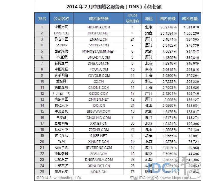 2月中國域名服務(wù)商Top25:萬網(wǎng)時(shí)隔半年后再奪榜首 IDC