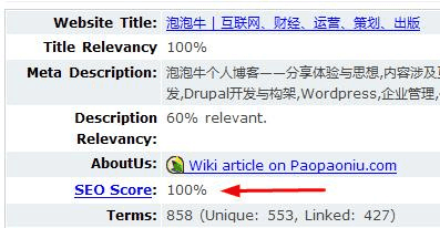以我的博客Paopaoniu.com 為例,這個(gè)工具打分是94%,然后給了兩條建議。其中一個(gè)是“The page contains more than meta keywords”(即頁面包含的關(guān)鍵字元素超過10個(gè)),然后它的建議解決方案是“Reduce the number keywords make them accurate.”(即減少關(guān)鍵字的數(shù)量,讓他們更精準(zhǔn)一些)