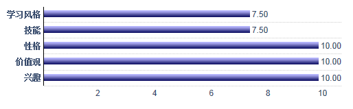 在性格、技能、興趣、價值觀和學習風格五個方面深入把握自己的情況。而我在這五個方面,粗略評估結(jié)果如下: