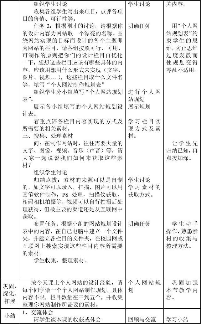 教學(xué)重點(diǎn):個(gè)人網(wǎng)站的規(guī)劃、素材的搜集和整理。