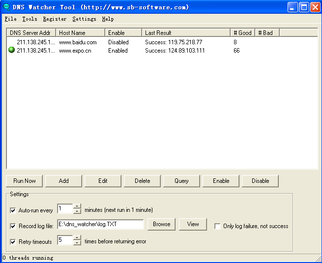 ? 通過Disable 按鈕,可以禁止域名監(jiān)控